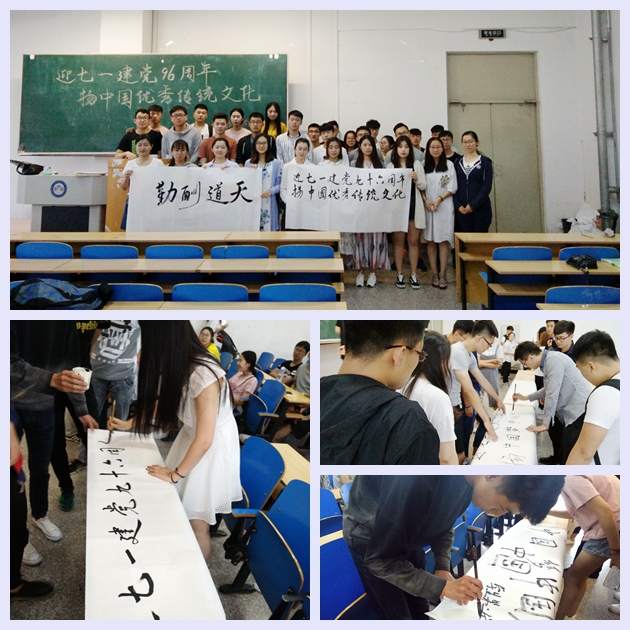 为贯彻落实中共中央办公厅、国务院办公厅下发的《关于实施中华优秀传统文化传承发展工程的意见》的文件精神,深化“两学一做”学习教育,引领学生党员关注中华优秀传统文化,体验文化瑰宝的独特魅力,发挥学生党员的先锋模范作用,6月14日中午,矿业学院学生党支部在主楼EN0101举办了“迎七一庆建党・问墨香品书法”主题党日活动。