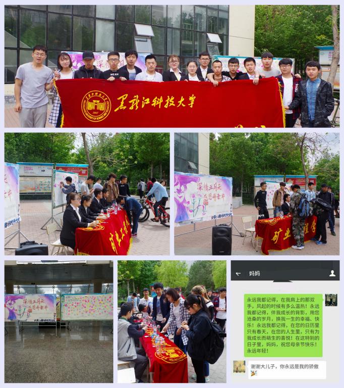 值此母亲节到来之际,为进一步弘扬中华民族的传统美德,营造尊敬母亲、关爱母亲、感恩母爱的良好氛围,结合学校第十五届心理健康教育宣传月暨第六届公寓文化节工作安排,5月12日中午,矿业学院在沁芳园门口开展了“深情五月天・感恩母亲节”活动。