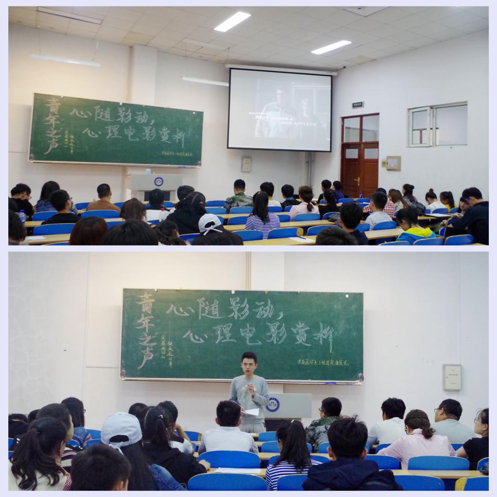 为认真贯彻落实学生处《关于举办第十五届心理健康教育宣传月暨第六届公寓文化节的通知》文件精神,进一步加强心理健康教育,不断丰富活动形式和内容,5月11日,矿业学院在主楼EN0101举办了“心随影动”心理电影赏析活动。学院辅导员王延春参加了本次活动。