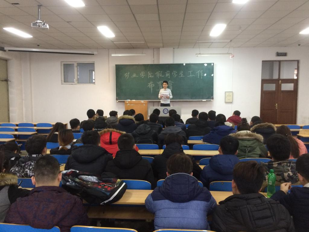为认真落实学工部(处)下发的《假前及假期学生工作安排意见》通知精神,确保假前及假期学院学生工作平稳有序开展,12月21日,矿业学院在主楼EN0101召开假前学生工作部署会。学院各班班长、团支书参加了本次会议。会议由学院辅导员王延春主持。