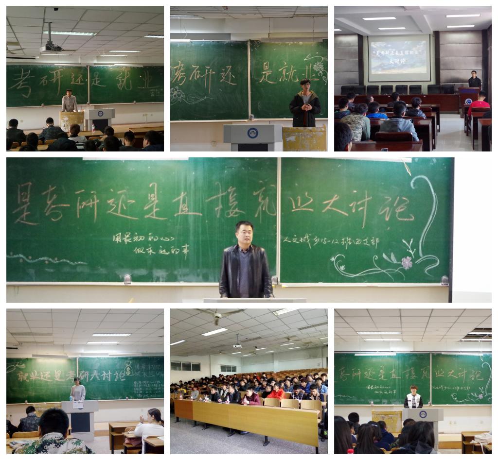 活动过程中,各专业学生结合自身实际,从对未来职业的了解及规划、对就业形式的认识、考研就业如何选择、考研的方向和目标、对自身的评价、对社会环境的分析、现阶段存在的问题和困难等方面积极踊跃进行了发言。与会领导和老师还与参会学生进行了面对面的交流。