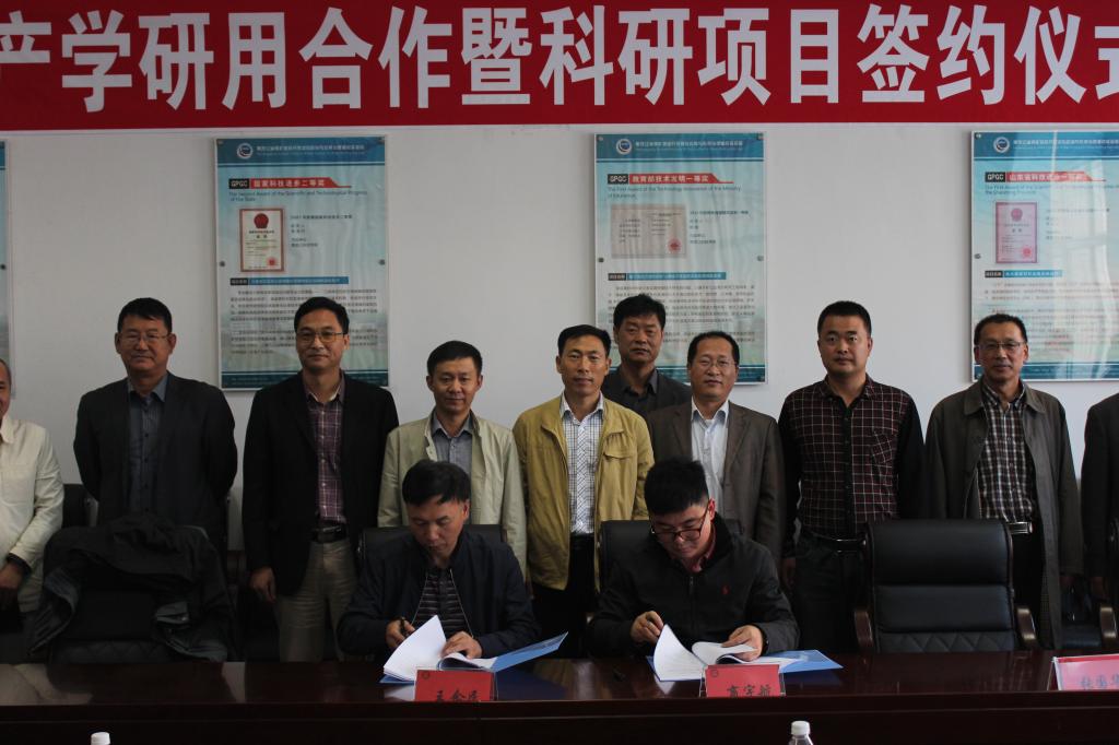 矿业工程学院为贯彻落实学校第一次党代会精神和推进“十三五”规划目标实现,大力推进校企产学研用协同创新,于9月28日上午邀请黑龙江省煤田地质物测队在队长王念民、书记魏恭仁一行9人到我校进行座谈交流,在前期合作交流的基础上,签署了《产学研用合作协议》、《激电中梯及高精度磁法在大兴安岭图里河一带中生代火山岩区铅锌多金属矿产地质调查中的综合研究与应用》项目协议。矿业工程学院全体党政班子成员及相关专业教师参加座谈会,会议由矿业工程学院院长张国华主持。