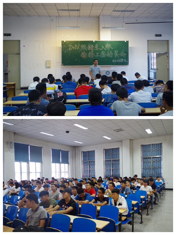 为认真贯彻落实学校学工委(扩大)会议关于做好新生入学接待工作的指示精神,确保2016级新生入学各项工作安全、高效、有序完成,8月29日中午,矿业学院在主楼EN0101召开了2016级新生入学接待工作动员会。学院辅导员孟祥瑞、王延春及院学生会、院团委全体迎新工作人员参加了本次大会。
