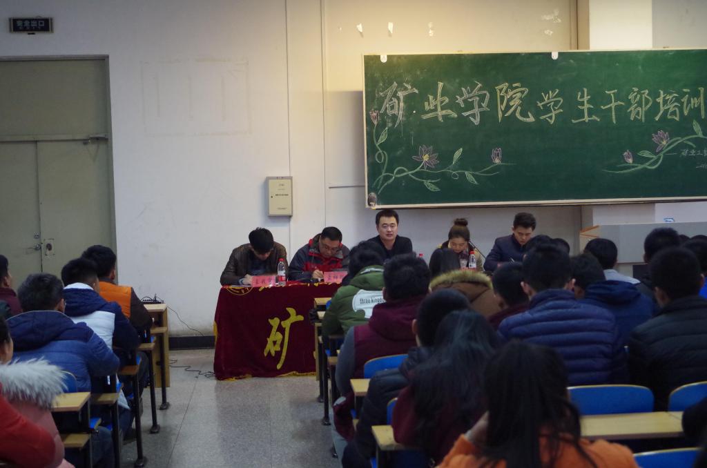 为了进一步贯彻落实学校新学期学生工作要求,提高学生干部工作能力,2月27日下午,矿业工程学院在主楼EN0101召开了2015—2016学年度第二学期学生干部培训大会。学院党委副书记高明星、学工办主任刘星彤、团委书记孟祥瑞、辅导员王延春、兼职辅导员王兆宇出席会议,学生会、团委主要学生干部及全体班长、团支书参加了大会。会议由团委书记孟祥瑞主持。