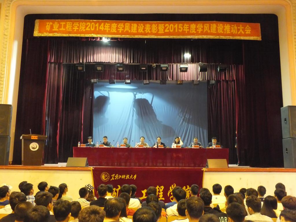 4月28日下午,矿业工程学院在俱乐部召开2014年学风建设总结表彰暨2015年学风建设推动大会。学生处副处长曲长海、校团委副书记苗雨,学院党委书记赵喜江、副书记高明星,院长张国华、副院长吕一波、李桂春、康健,全体辅导员、班主任参加了会议。会议由学院党委副书记高明星主持。
