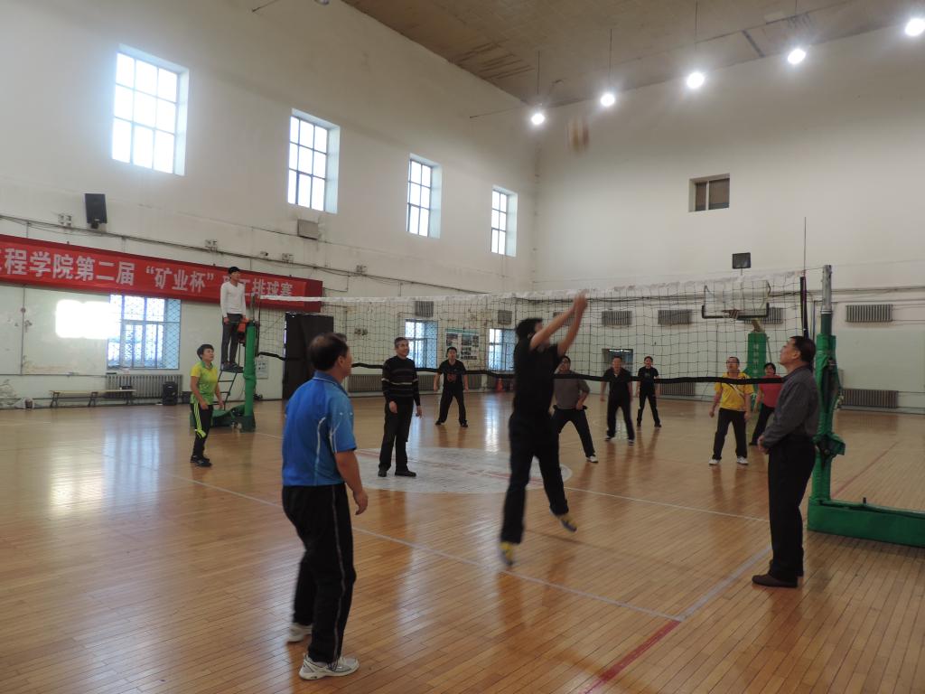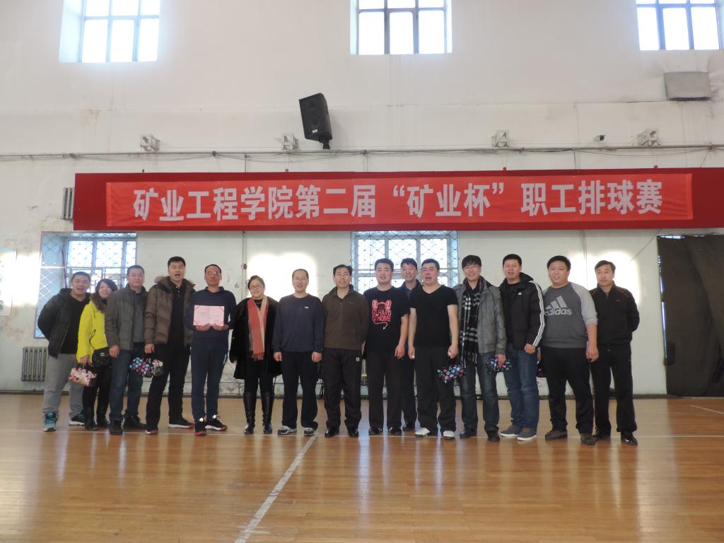 2015年1月6日上午,在体育馆举办了“矿业工程学院第二届‘矿业杯’职工排球赛”,本次比赛以工会小组为单位共有6只球队参加,分别是学院的5个基层工会小组和七台河国土资源局班学员代表队。比赛参照最新国际排球比赛规则,要求每队必须保证有2名女职工在场上,以单循环积分排名确定比赛名次。整个比赛过程中,工作人员各负其责、任劳任怨;全体参赛队员情绪高涨,顽强拼搏、团结协作,赛出了风格,赛出了水平;场下的啦啦队大声为场上的运动员加油喝彩。最后采矿工程工会小组获得了一等奖,测绘工程工会小组和矿物加工工程工会小组获得二等奖,七台河国土资源局学员班、地质工程工会小组和人文地理与城乡工会小组获得三等奖。