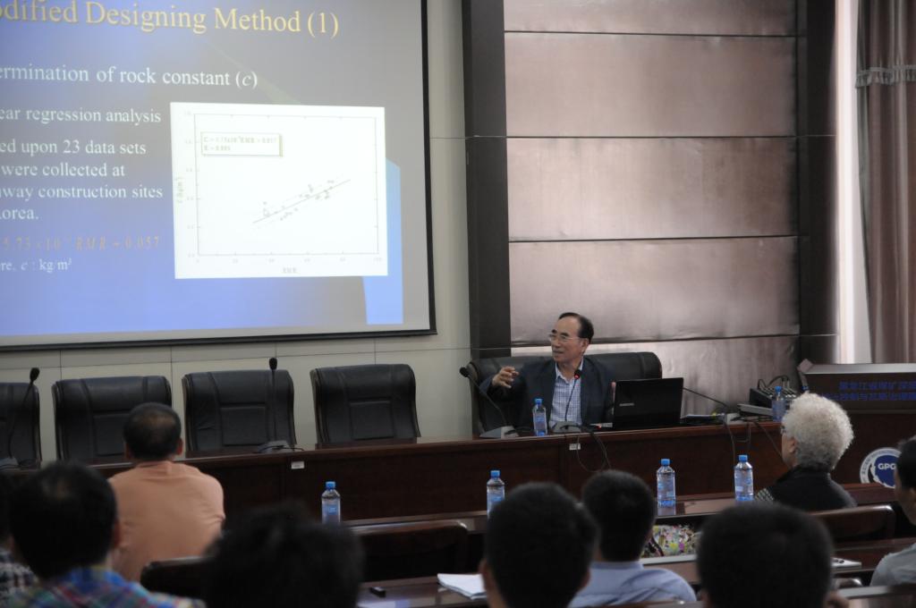 6月17日,韩国工程院院士李正仁教授受我校科技处、矿业工程学院邀请,在矿业工程学院二楼学术报告厅做报告,学术报告由东北大学金日守教授翻译。部分教师、研究生、本科生参加了学术报告会。会议由黑龙江省煤矿深部开采地压控制与瓦斯治理重点实验室承办,由矿业工程学院副院长肖福坤主持。
