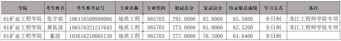 矿业工程学院2026年硕士研究生招生考试(地质工程)调剂待录取名单