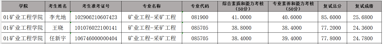 矿业工程学院2026年硕士研究生招生考试(矿业工程采矿工程)待录取名单
